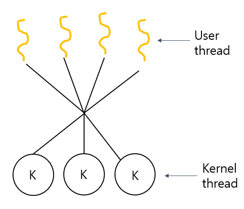 - Many-to-Many 모델과 Two-level모델은 적정 수의 kernel thread를 유지하기 위해 communication 필수