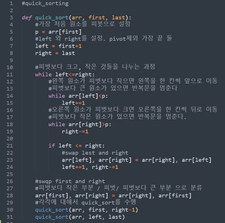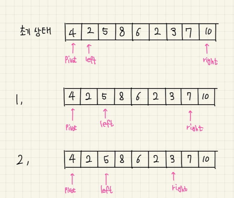 - 피벗은 arr[0], left와 right도 정의되어 있다.