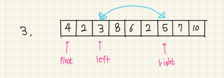- right: 피벗보다 작은 3이 나오니 드디어 멈췄다.